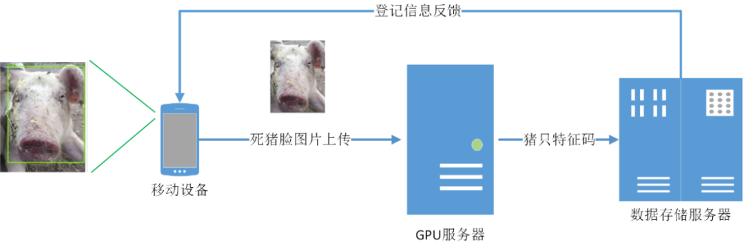 移动设备:数据采集设备。普通带摄像头的智能手机,支持安装本公司提供的APP以运行猪脸过滤、检测算法。