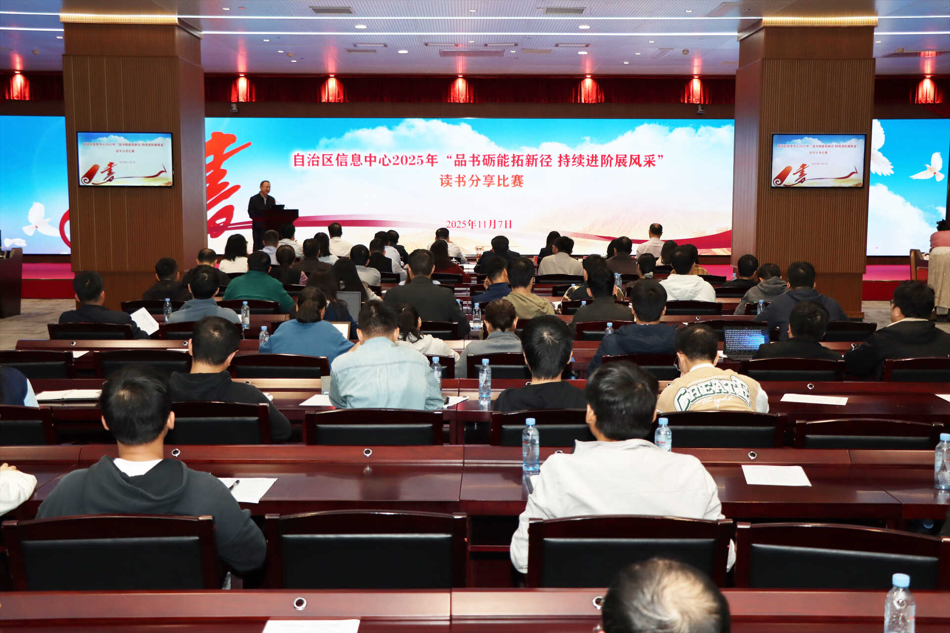 11月7日,自治区信息中心举办2025年“品书砺能拓新径,持续进阶展风采”读书分享比赛。自治区数据局党组成员,自治区信息中心党委书记、主任周飞出席活动并讲话。