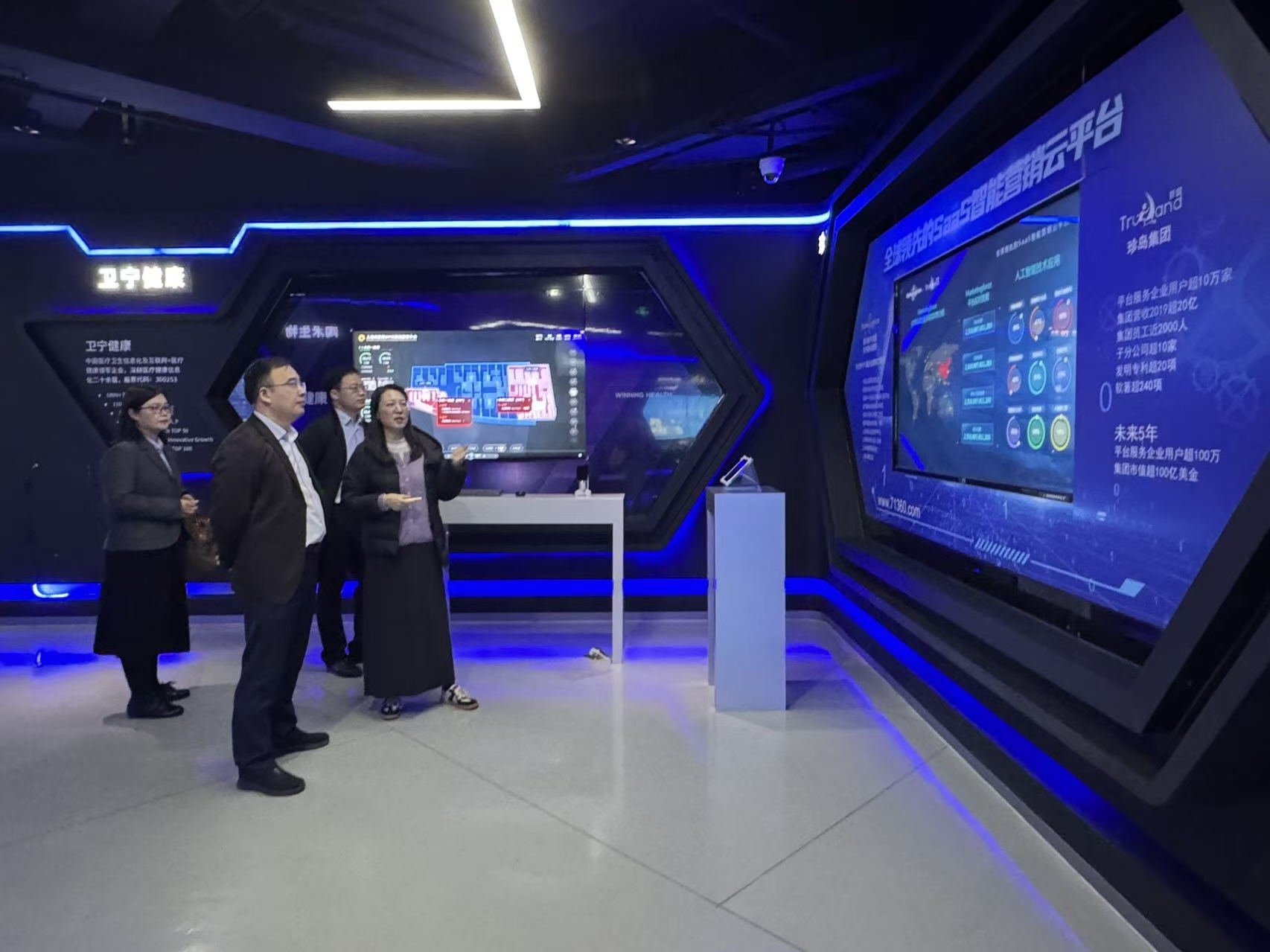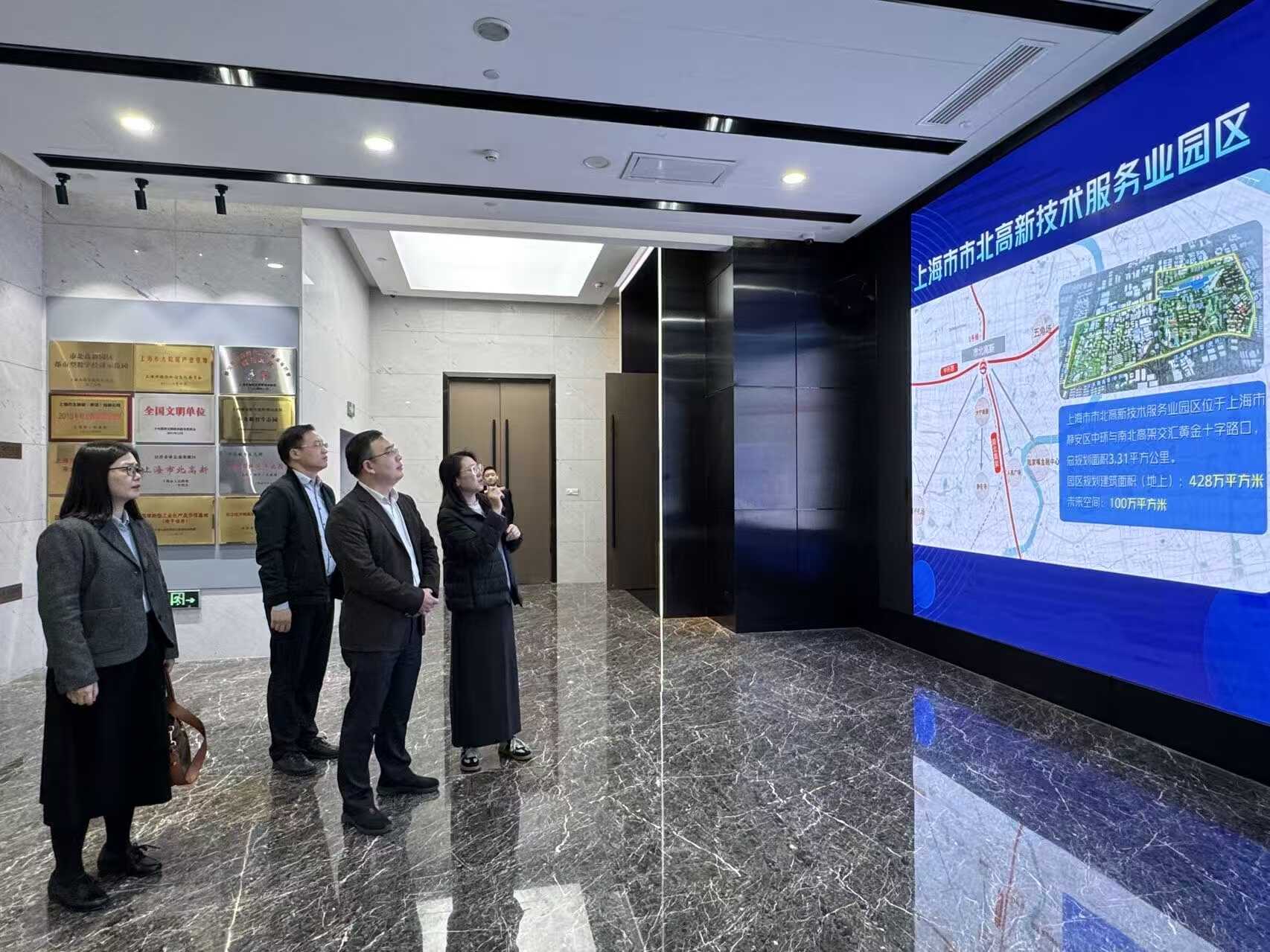 调研组一行先后考察了上海市市北高新企业AI体验馆和风语筑数字规划馆。在AI体验馆,调研组参观了涵盖交通、医疗、政务、旅游、安防、智慧城市等行业的人工智能技术应用展示,详细了解园区重点企业的代表性科创成果,以及园区首创的数据智能产业链图谱。在风语筑数字规划馆,调研组亲身体验了iCity智慧城市数字展示创意平台、沉浸式互动空间等国际先进数字展览技术,感受了VR/AR/MR技术在数字城市规划和新文旅体验中的创新应用。