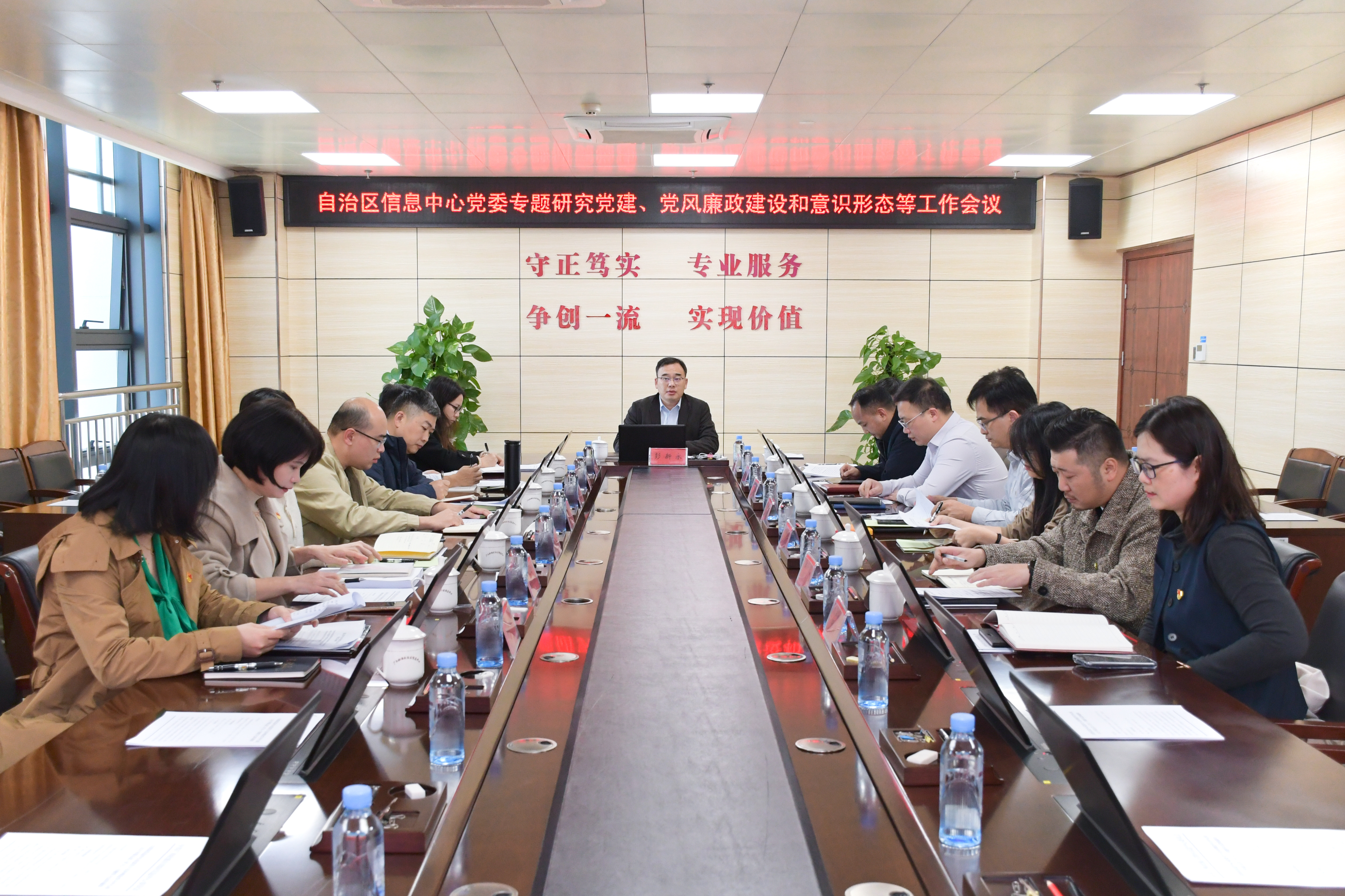 12月25日,自治区信息中心党委专题研究部署党建、党风廉政建设和意识形态等工作。自治区信息中心党委副书记、副主任彭新永,副主任文静、陈善武出席会议。自治区纪委监委驻审计厅纪检监察组副组长杨玉明到会指导。